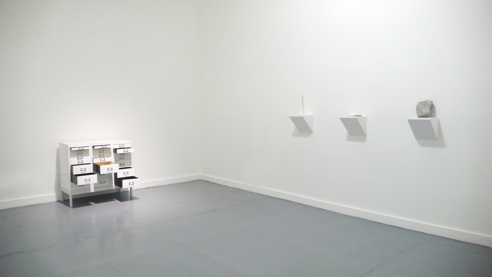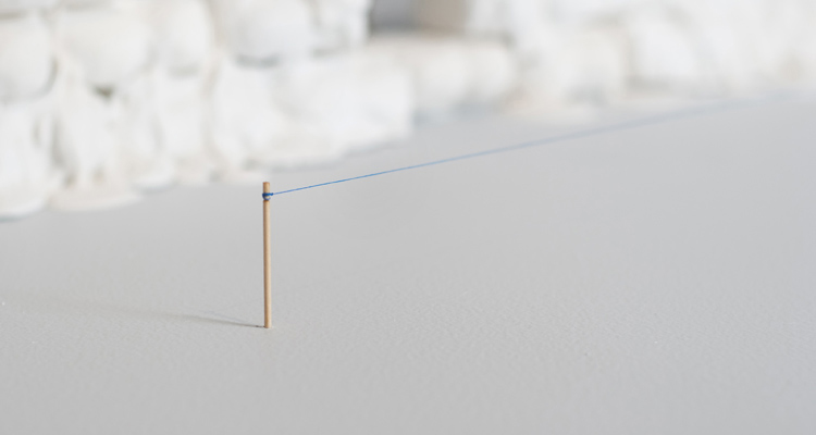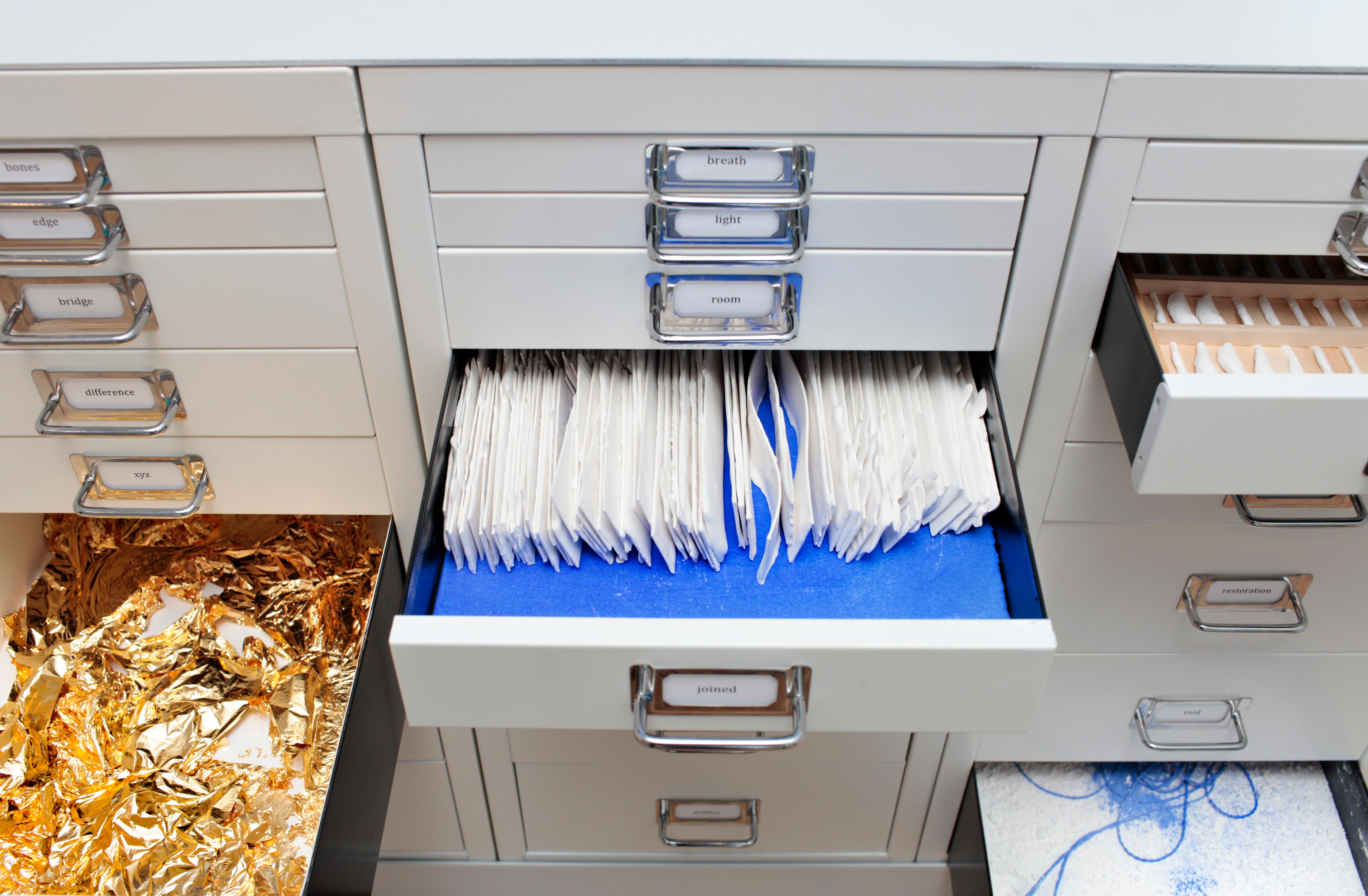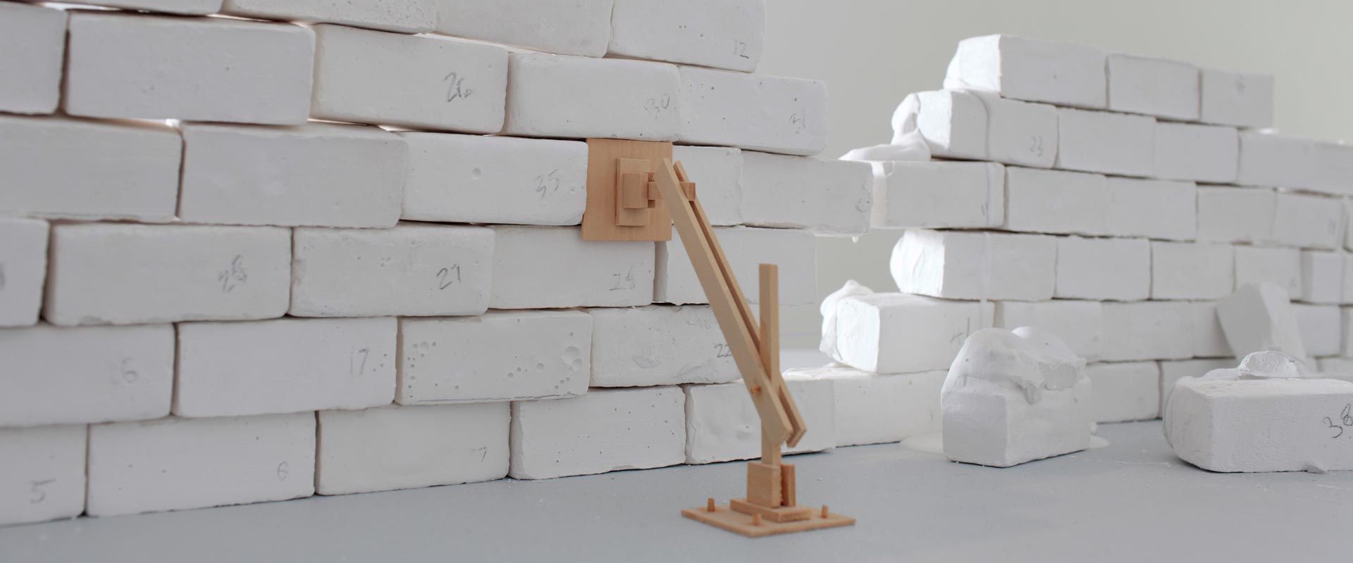 This exhibition offers a look into the intimate processes Downen employs in the studio to develop ideas and plan large scale installations. The art invites viewers to survey Downen’s work from a new and unexpected perspective. The project space features a long table and cabinet of drawers displaying models crafted from plaster, basswood, paper and gold leaf. The small scale of these sculptures explores a reversal of the experience that viewers generally have with Downen’s monumental installations. The inverted scale and assembly of the maquettes as a singular tablescape/cityscape result in a reconsideration of the forms in relationship to each other, the body and to Downen’s art making practice overall.