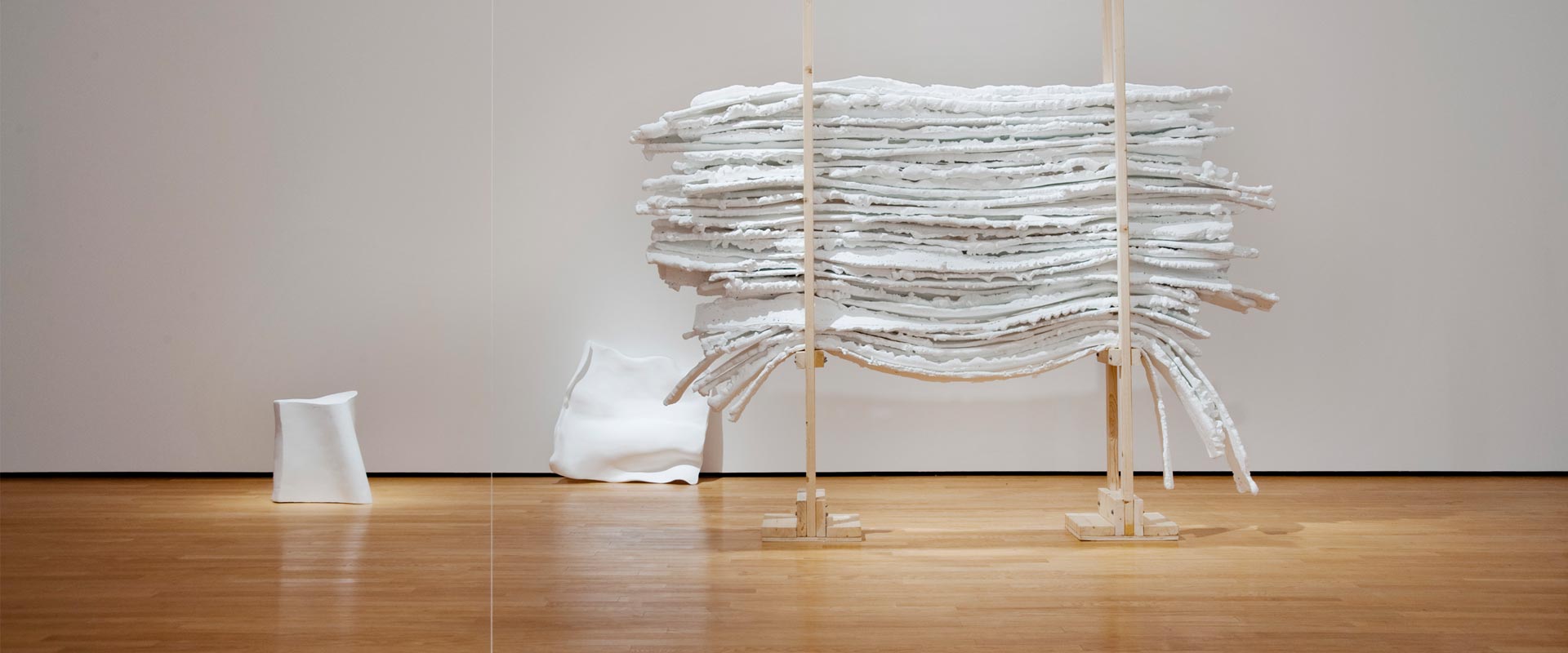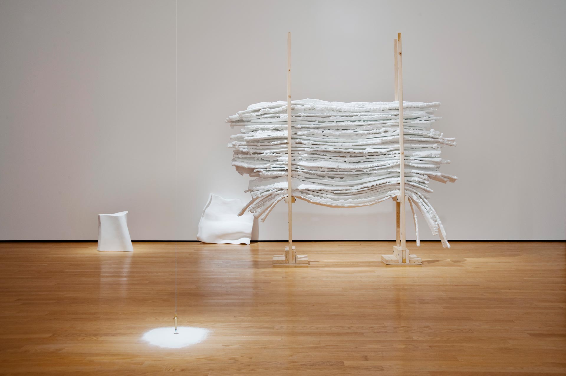 “Crossing the threshold to…Counterparts we find ourselves in the midst of a site of (p)art objects, a site of wonder that poses questions: How are we to organize this experience? How are we to use our imagination? The parts of a human form may be suggestive of a body to be, a habitat to house our mind, or it may be experienced as a whole that has disintegrated into fragments, dispersed and scattered across the floor. The site does not tell a story, but opens a space for us to assemble our own stories, build our own dwellings, dream our selves into being.” Britt-Marie Schiller, Professor of Philosophy at Webster University, from the exhibition catalogue.