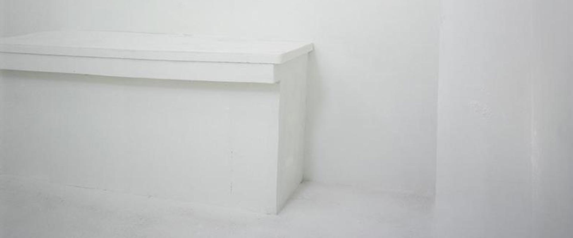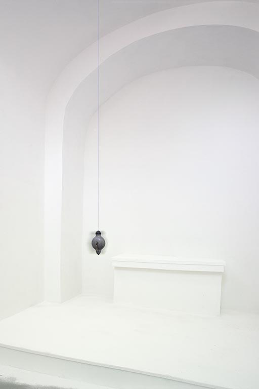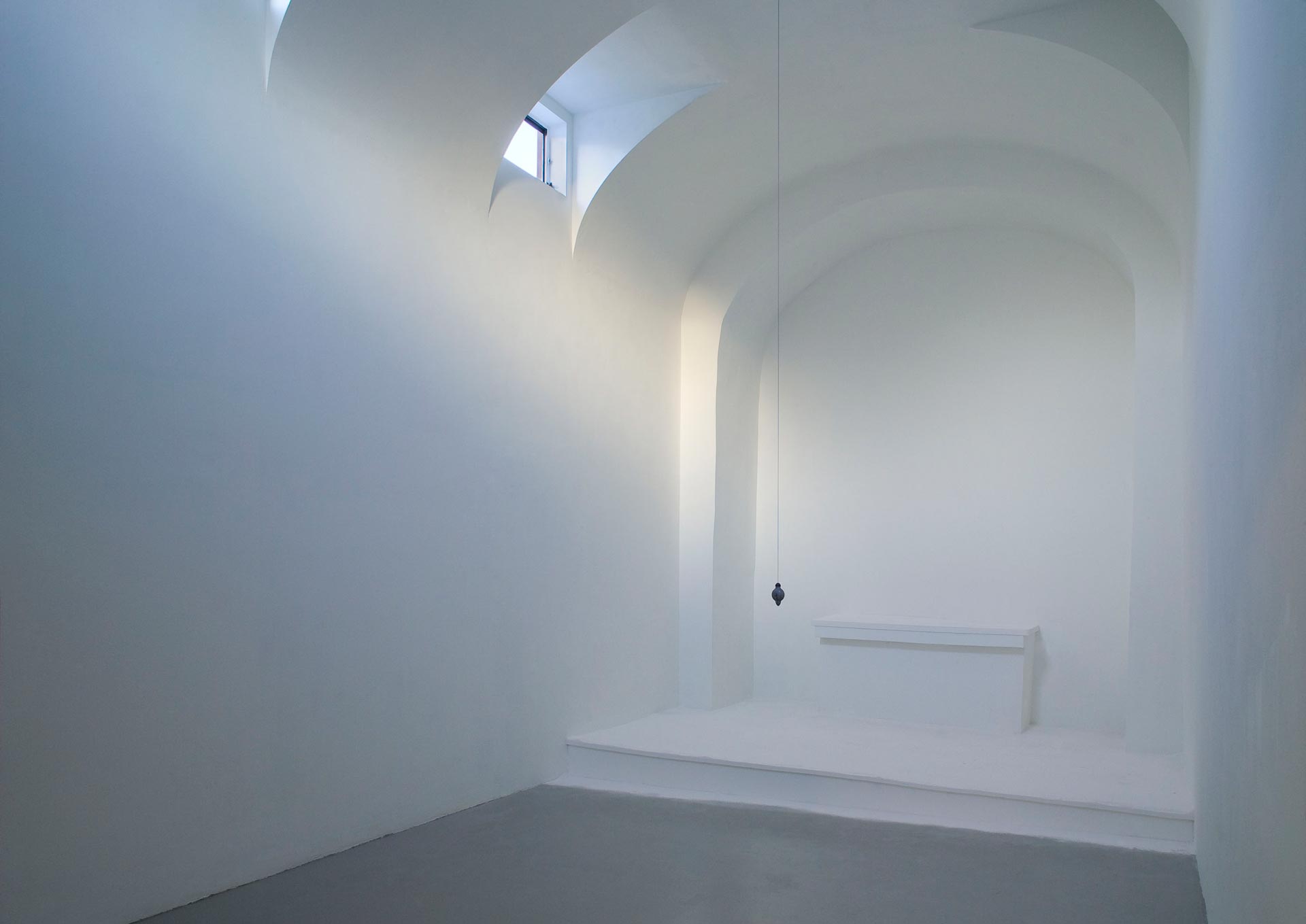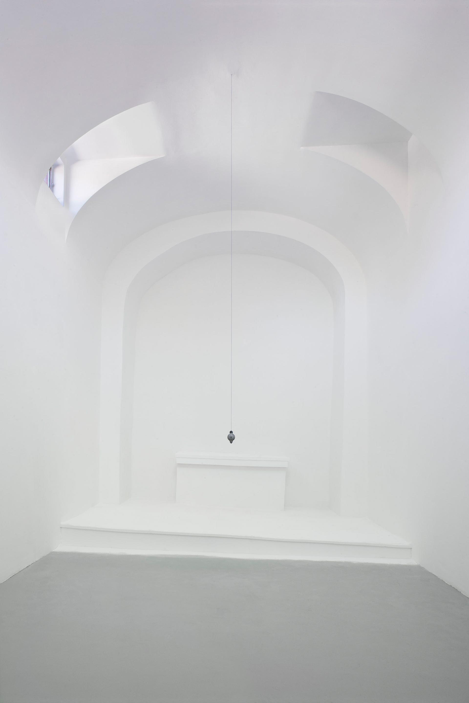 The human need for quietness and stillness inspired this site-specific installation created in a former chapel. I transformed the architecture by misaligning the chapel’s symmetry, edges, and wall angles. Natural light caused a diffuse glow and the air was mildly scented with pure frankincense and myrrh. The resulting sensation of the tilt of the room was subtle, yet anchored by a single plumb line hung at the height of an adult viewer’s heart. One viewer at a time was admitted to the installation and invited to stay as long as desired. Sensorial perception and awareness were heightened in viewers who reported an experience that was both meditative and disorienting. With a clear spiritual context, the installation offered a place to contemplate what we perceive as true in relation to physical reality.