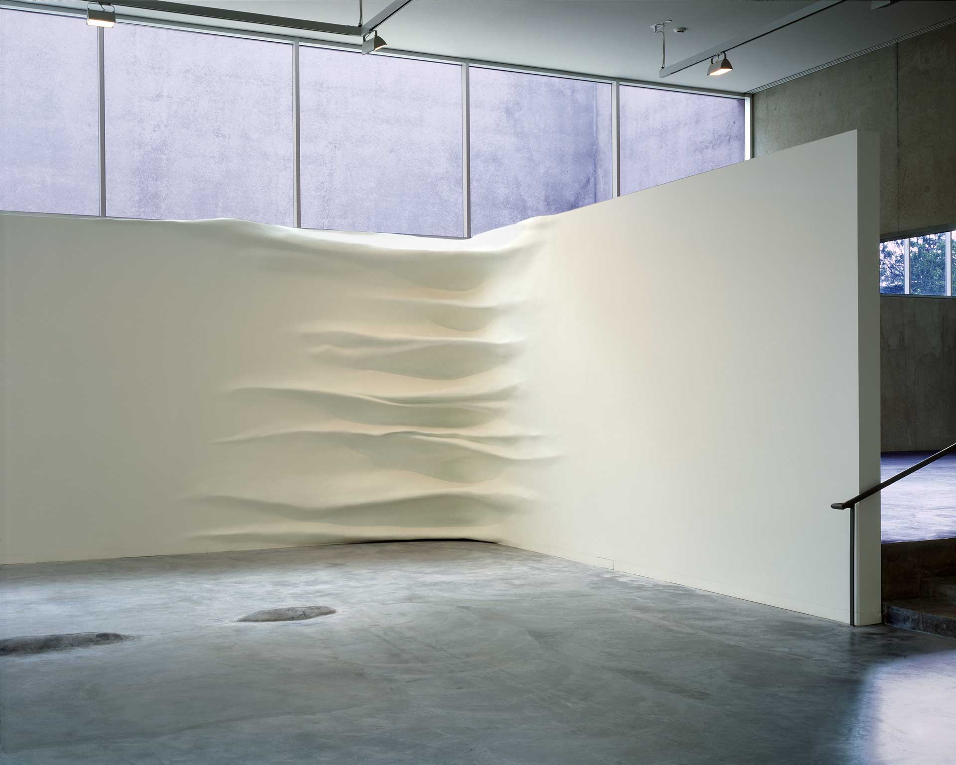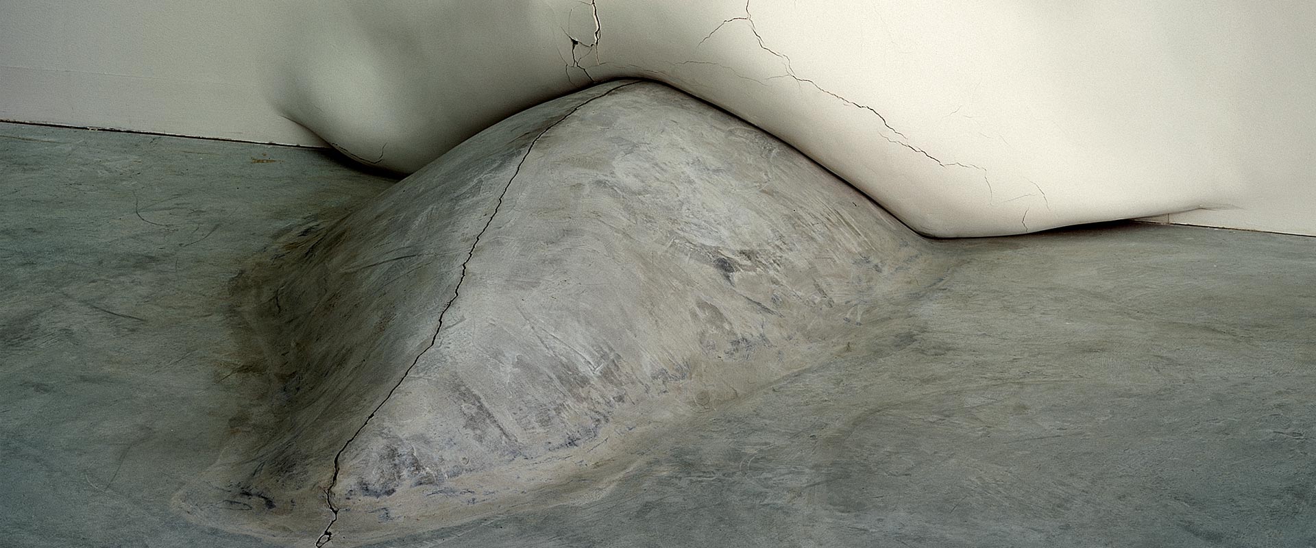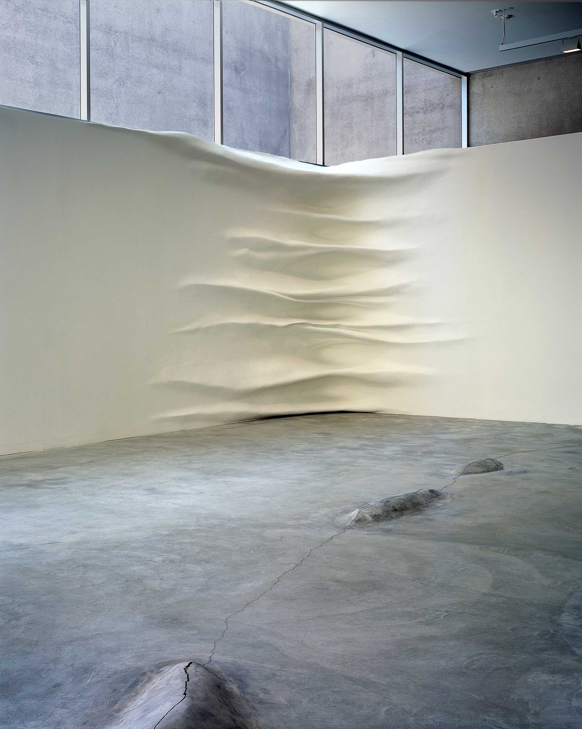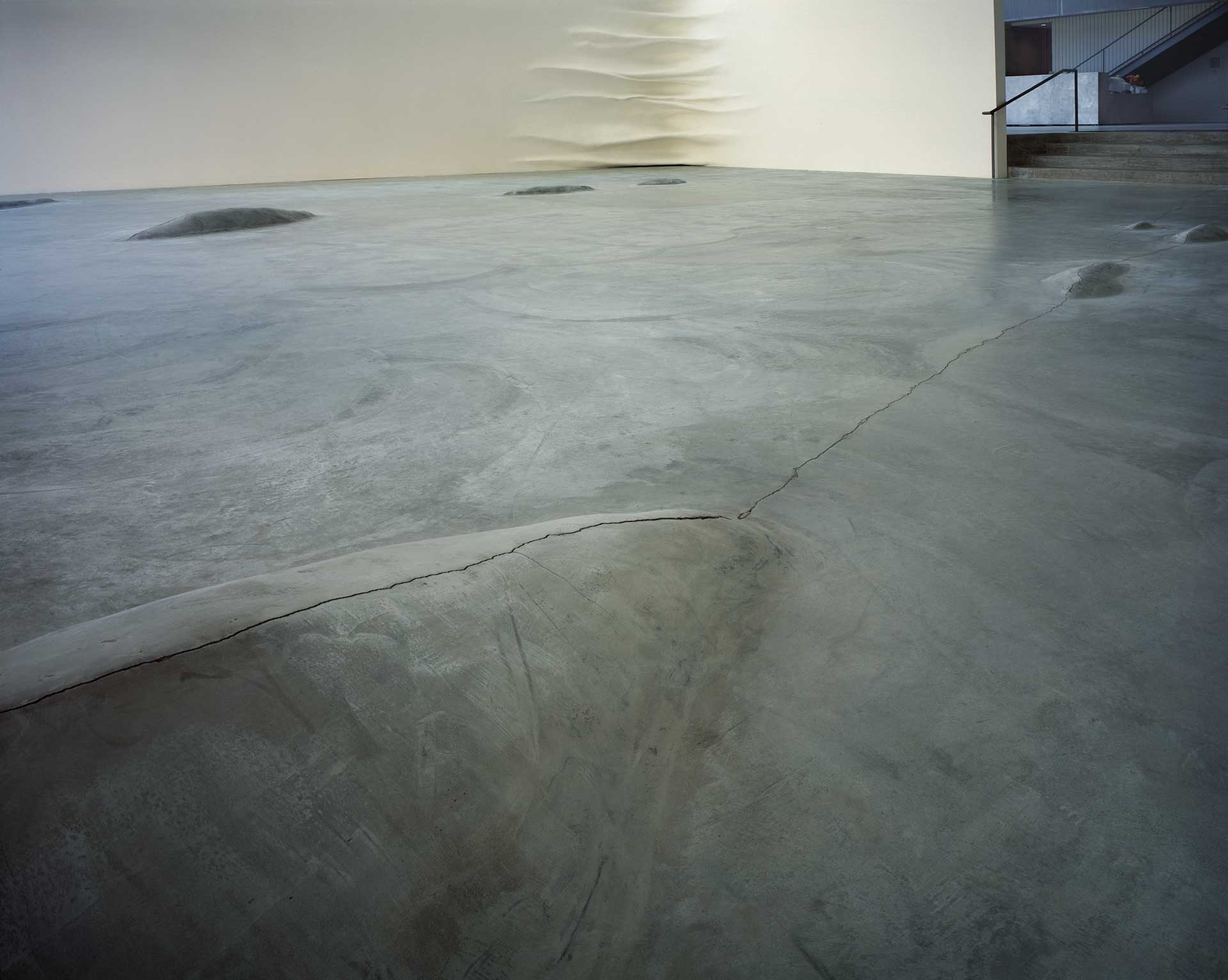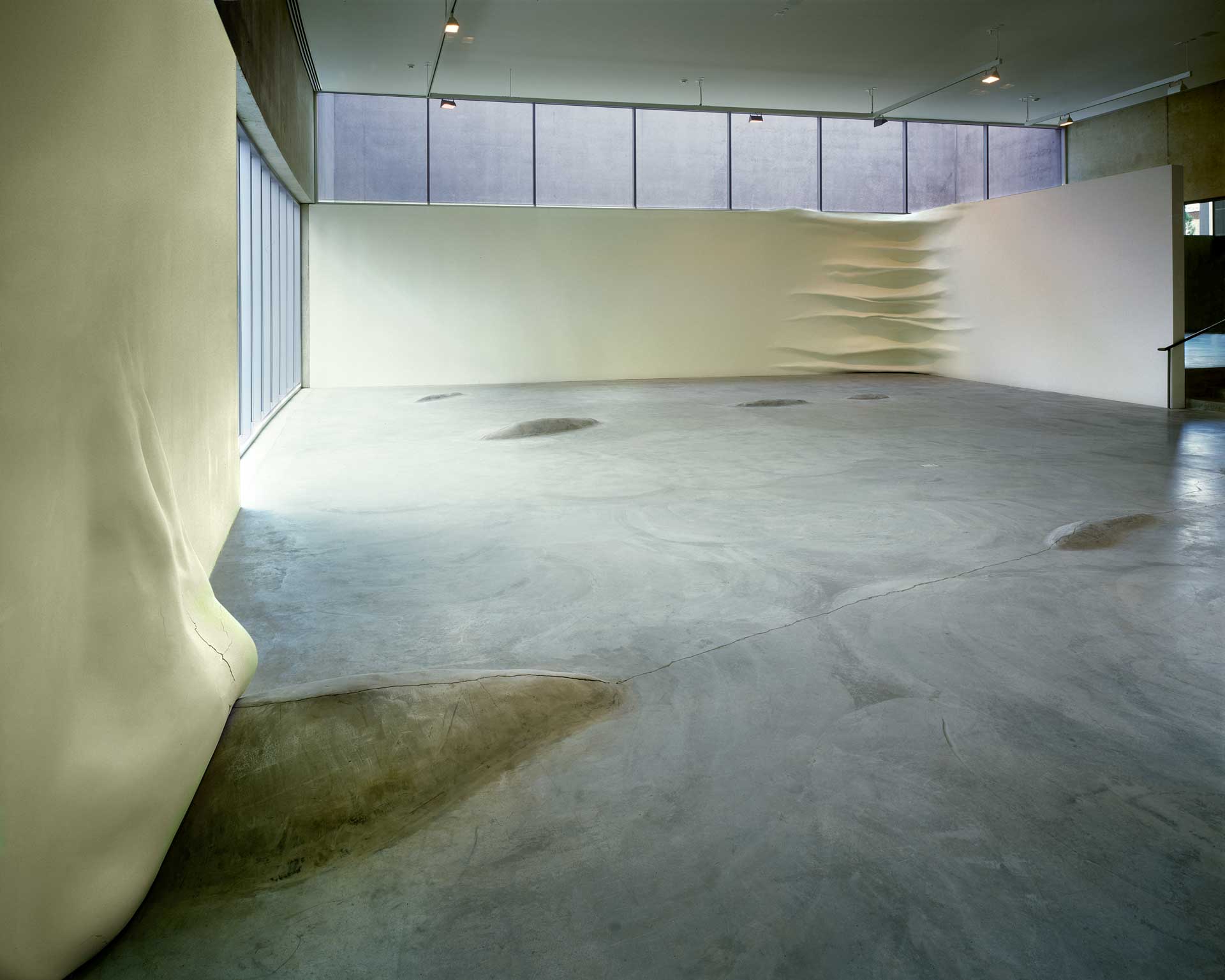 The project began with a question: How can the physicality of the gallery space mirror an understanding of architecture as an extension of the human body and mind? Biomorphic disruptions inside the museum walls and along the cracks in the concrete floor endow the building with human characteristics. In one corner, tendon-like sinews imply flexibility. Expansion, contraction, stress and gravity were the forces used to activate the space and reframe the building as a kind of body that settled into its physical location and social identity.