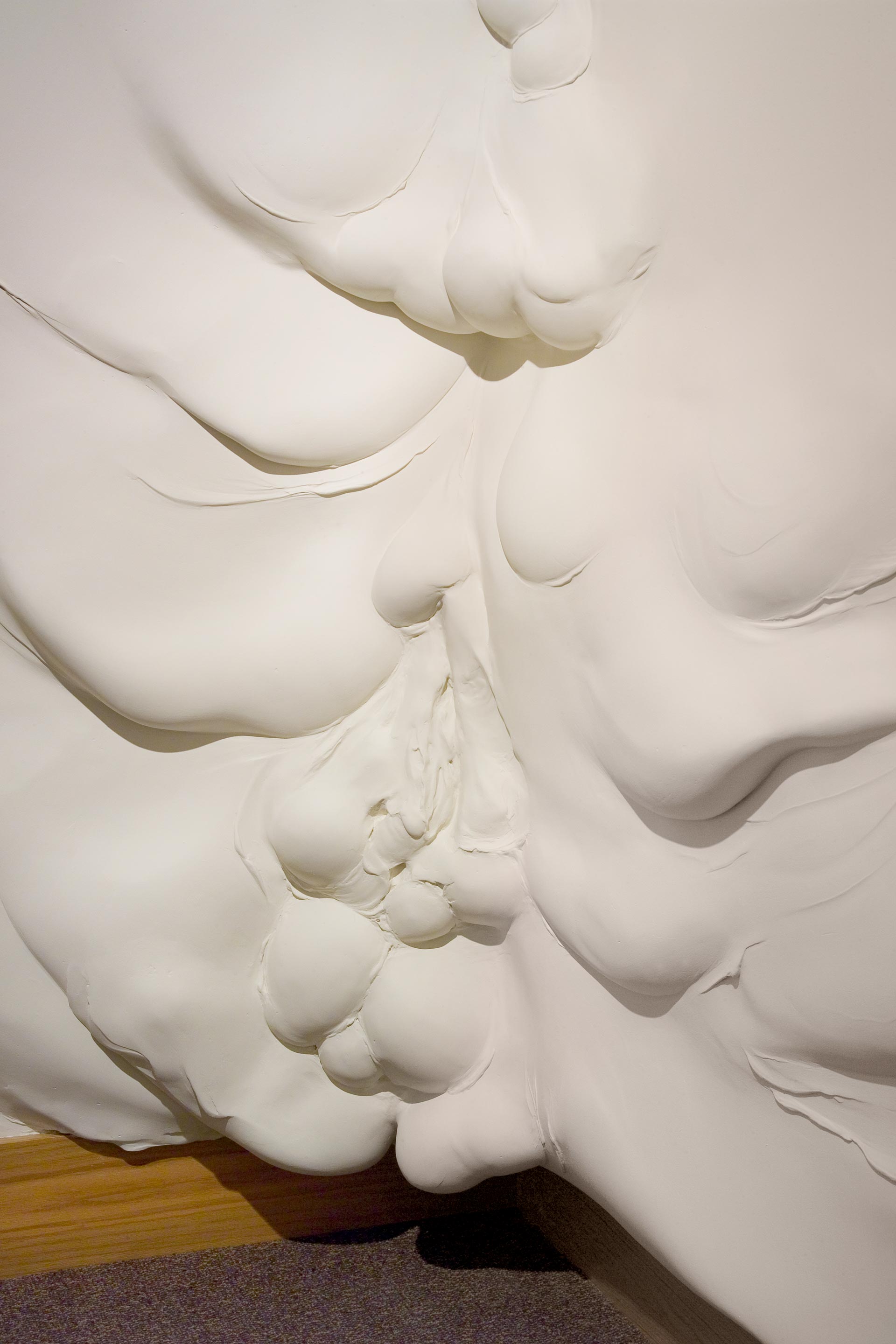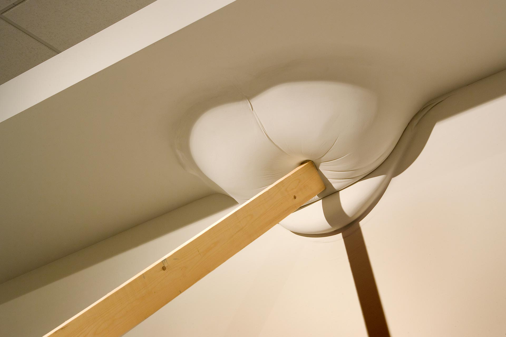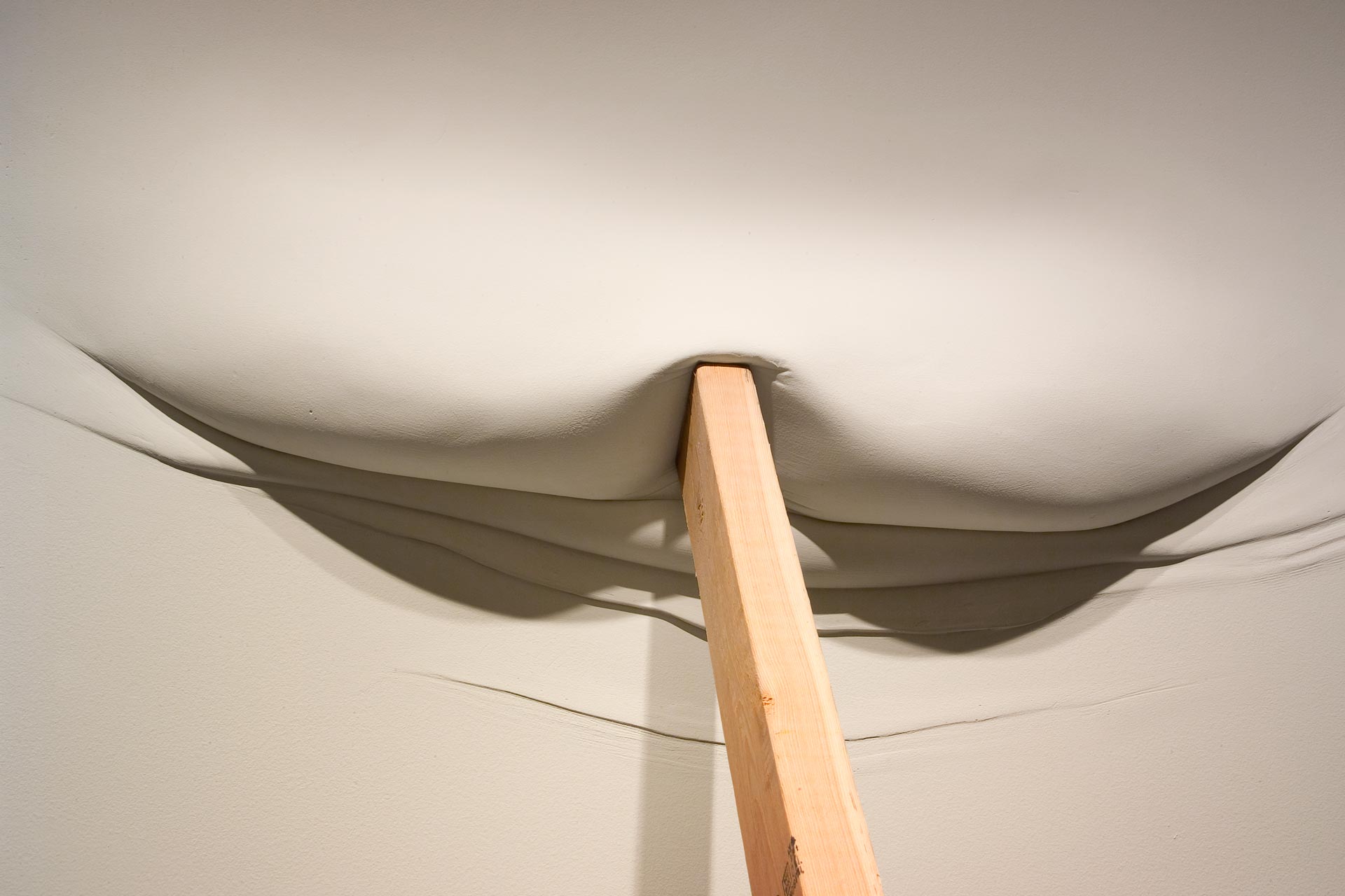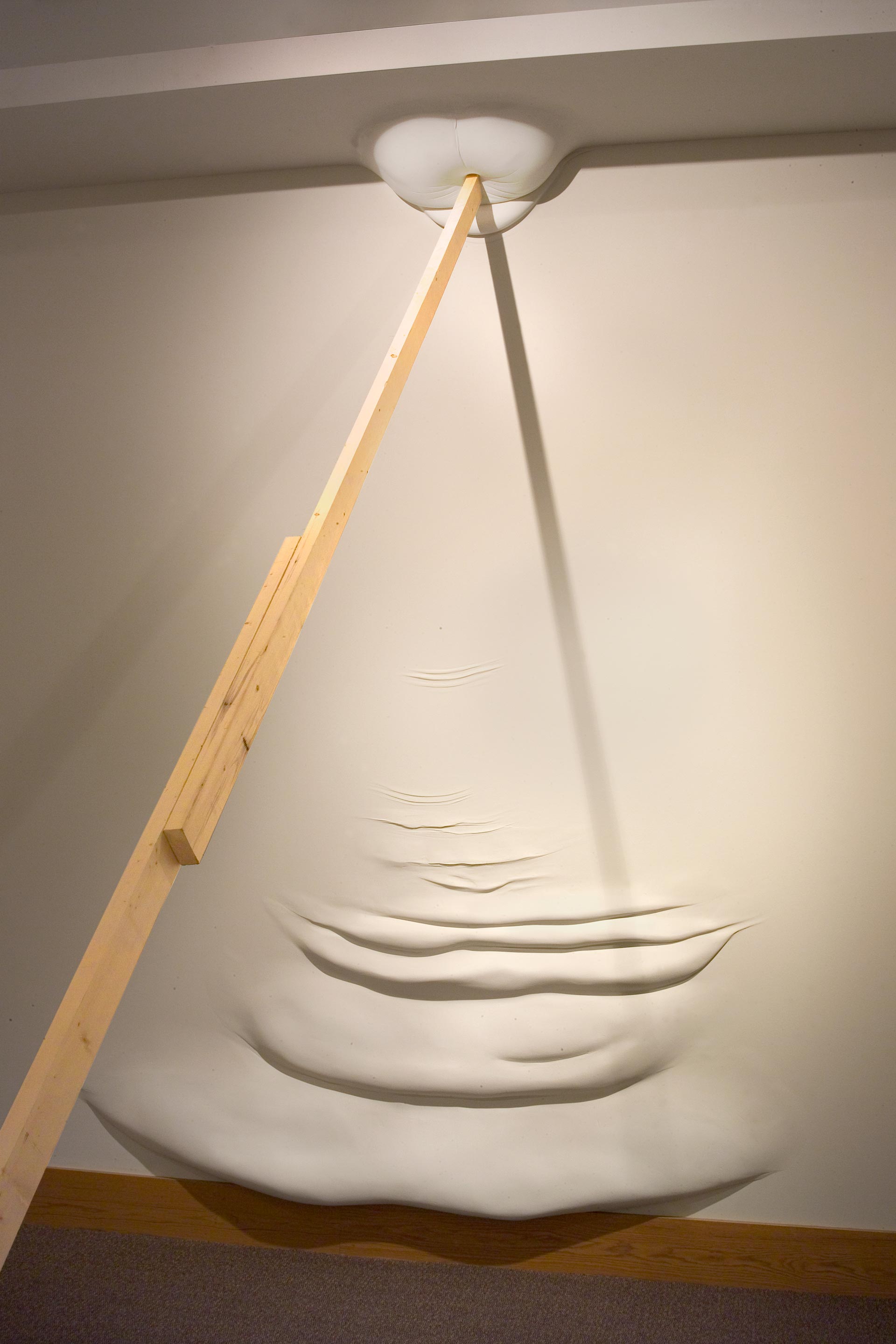 The site-specific installation addresses the temporality of both bodies and buildings by using visual elements that suggest opposition to forces of time through labor. In the exhibition publication Shannon Fitzgerald writes, “Downen…creates a space, which is transitory in nature, to impart meaning by offering physical engagements that correspond to the experiences of the body and give validity to the sense of the self as bodily. Downen’s installation is not so much an ideological critique as it is about creating a reflective space to momentarily resist movement in order to reflect, honor, and consider possibilities that are sometimes overlooked or lost due to the fleeting and ephemeral nature of life.”